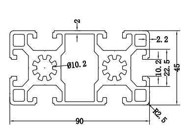 | Làm nổi bật | Hồ sơ đẩy nhôm tùy chỉnh,đùn hợp kim nhôm công nghiệp,Hồ sơ đùn kim loại 45x90 |